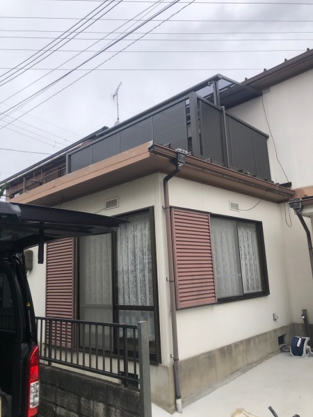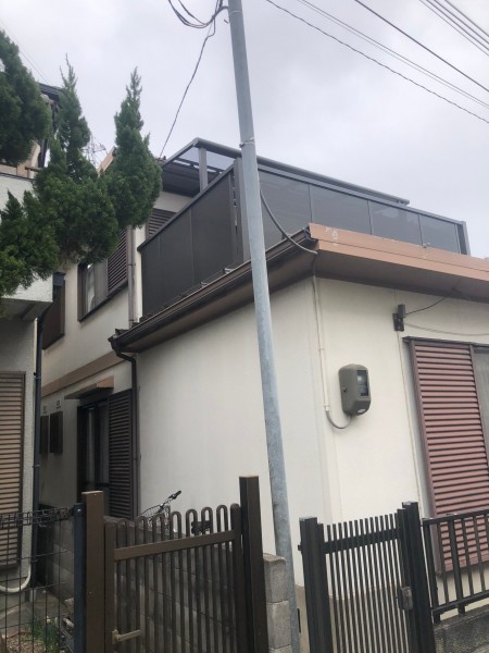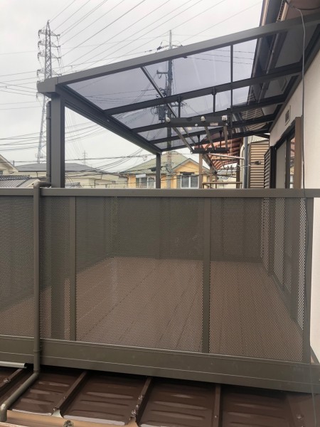兵庫県三田市横山町 N様邸 ベランダ・テラス交換工事(写真は交換後になります。屋根置き型タイプの為梯子作業にて行いました) 工事代金103.3万円程度